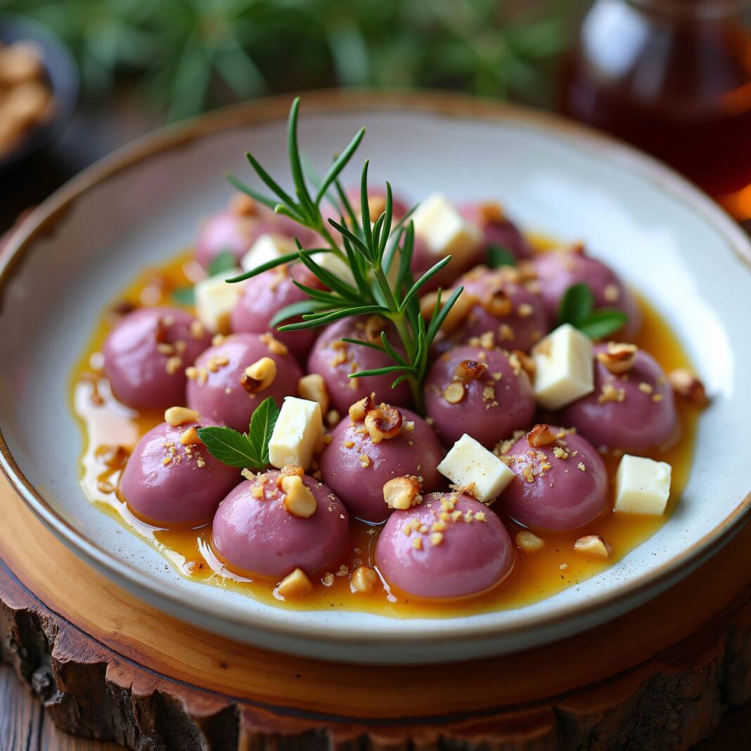 Ein köstliches Rezept für Rote Rüben-Gnocchi, serviert mit Frischkäse und gerösteten Haselnüssen.