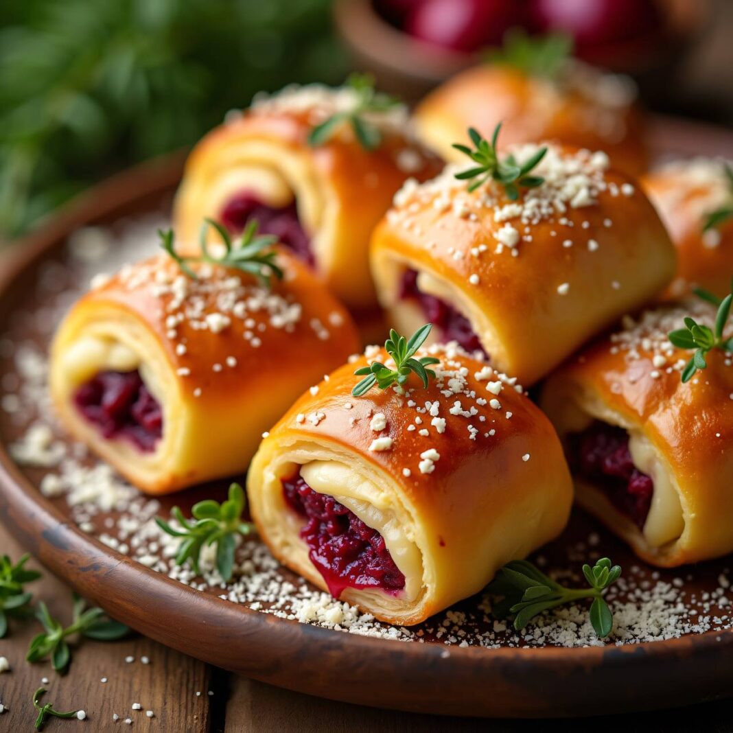 Leckere Krapfen gefüllt mit roten Rüben, Käse und Schinken, perfekt als Snack oder Vorspeise.