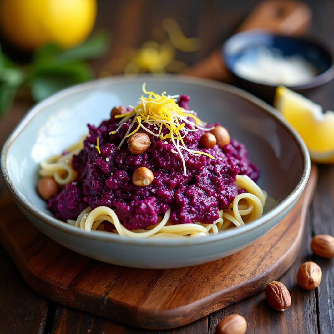 Ein kreatives und schmackhaftes Rotkrautpesto, ideal als Sauce für Nudeln mit einer frischen, nussigen Note.