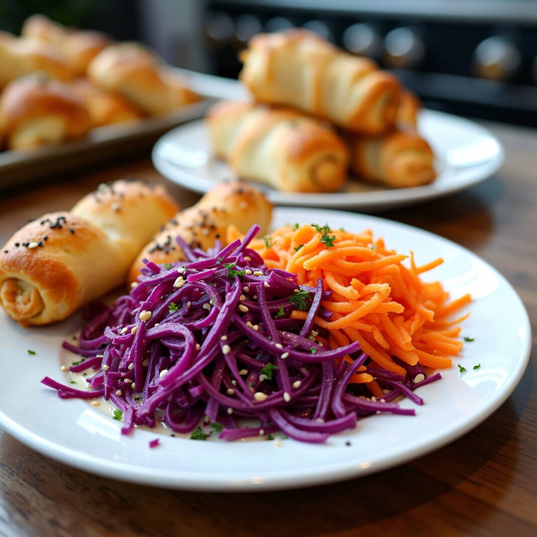 - Vermische das Rotkraut mit der Hälfte des Dressings in einer separaten Schüssel.