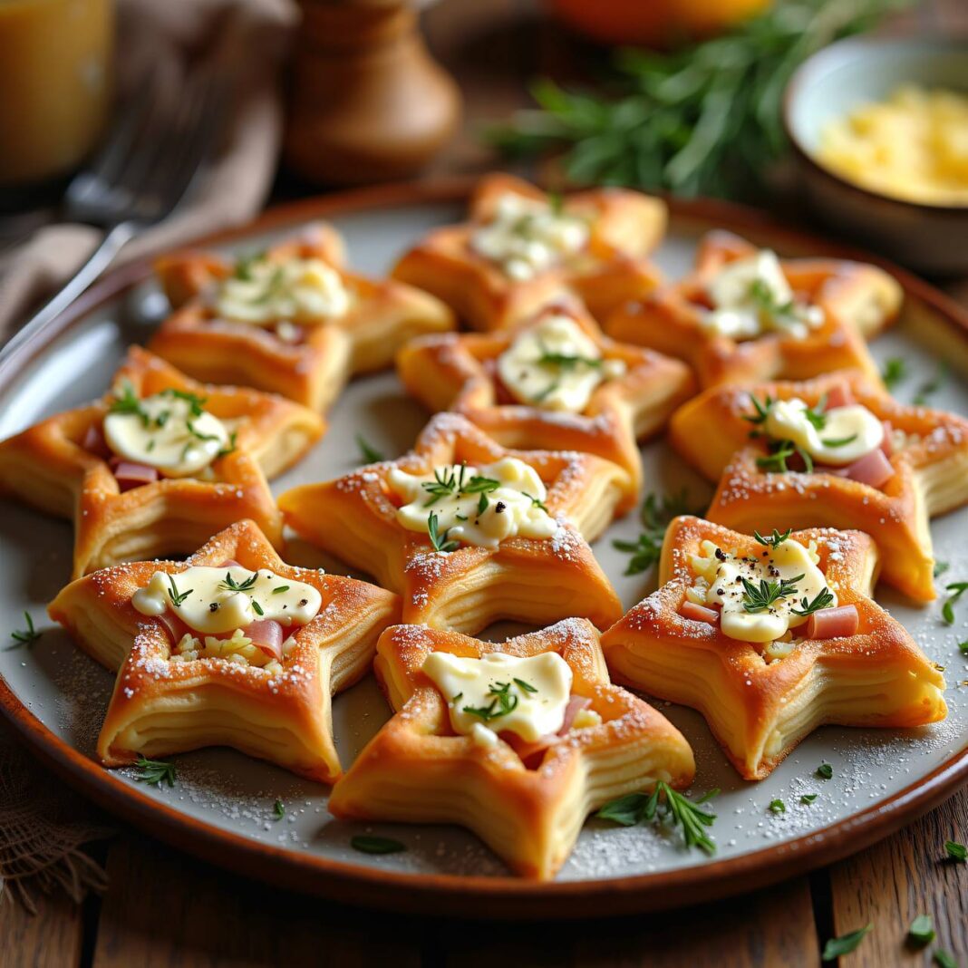 Leckere Sterne aus Pizzateig mit einer Füllung aus Sauerkraut, Schinken und Gruyère.