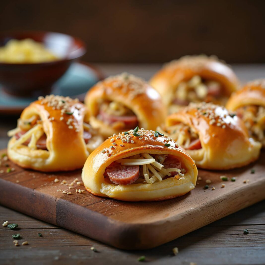 Leckere Brötchen gefüllt mit einer herzhaften Mischung aus Sauerkraut und Wurst.