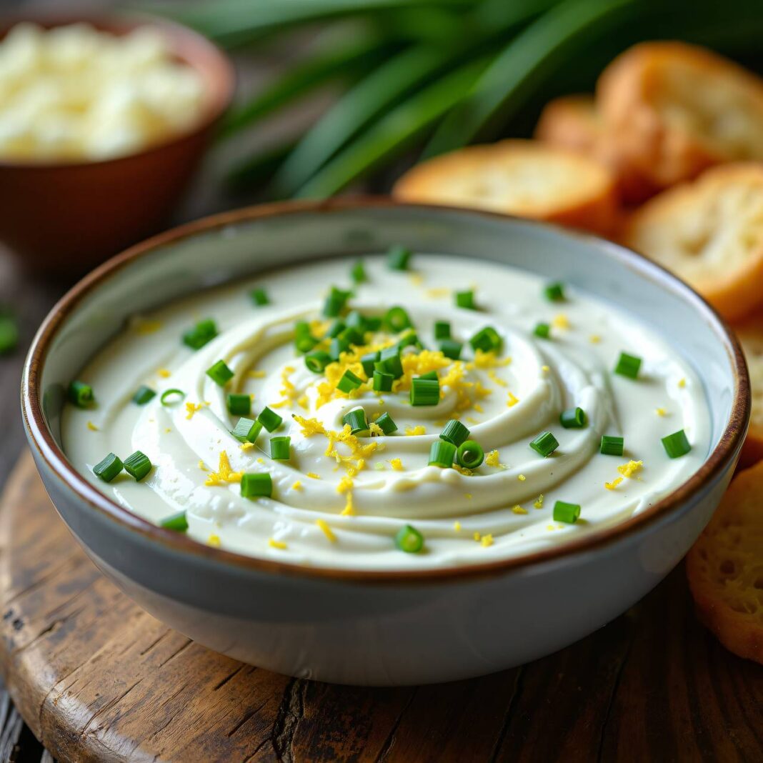 Ein köstlicher Dip oder Fondue-Begleiter aus Crème fraîche und frischem Schnittlauch.