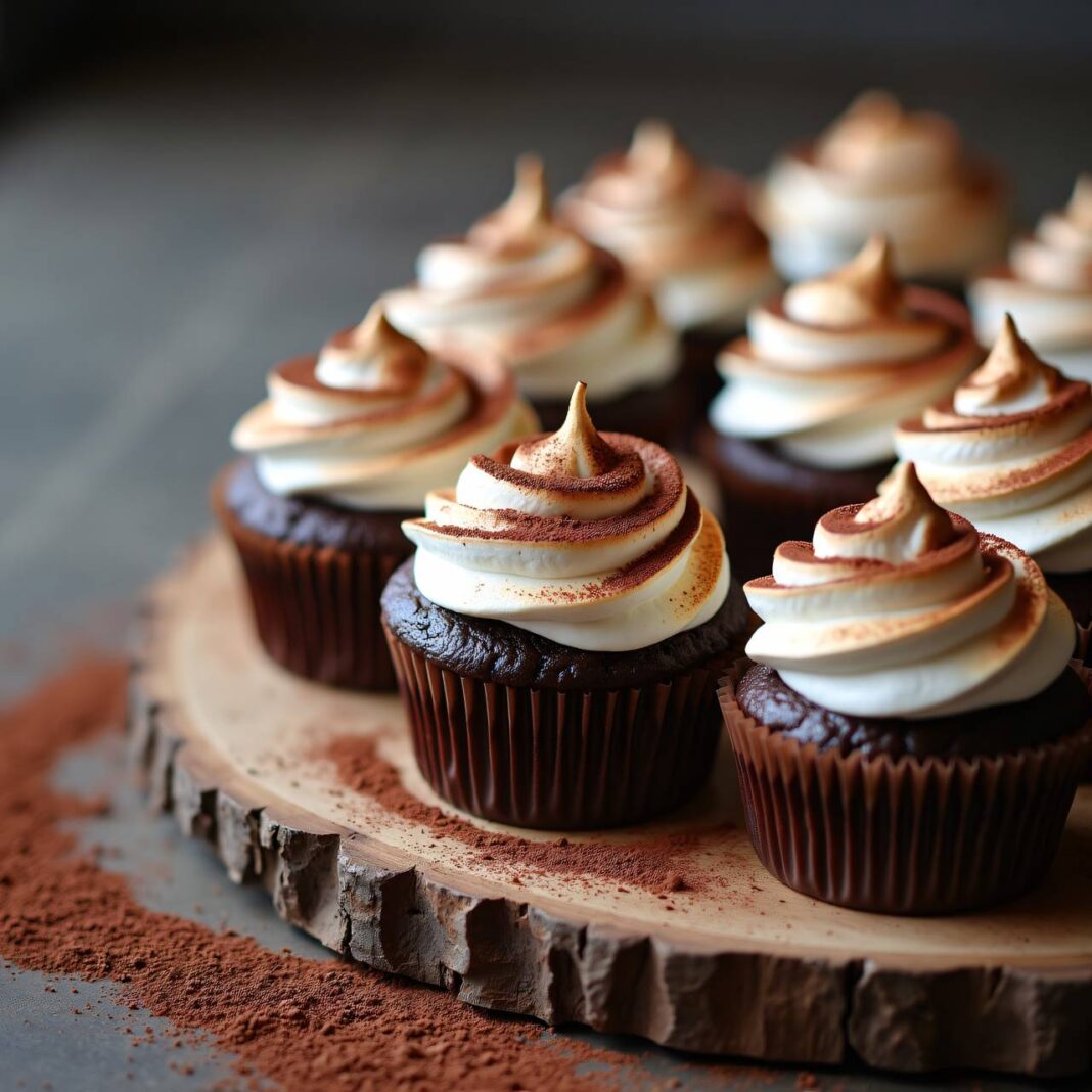 Saftige Schokomuffins mit einer leckeren Baiserschicht und Aprikosenmarmelade.