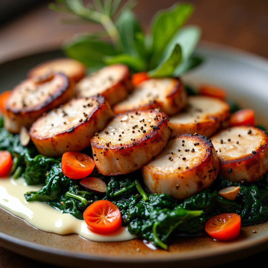 Ein köstliches Gericht mit saftigen Schweinemedaillons und aromatischem Morchel-Spinat.