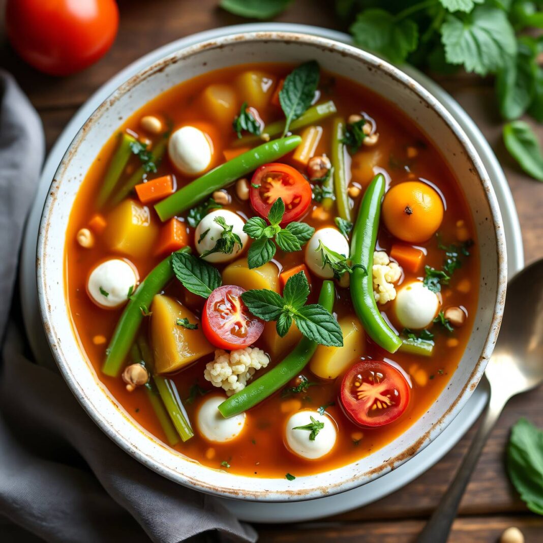 Eine erfrischende und gesunde Minestrone mit frischem Gemüse, ideal für den Sommer.