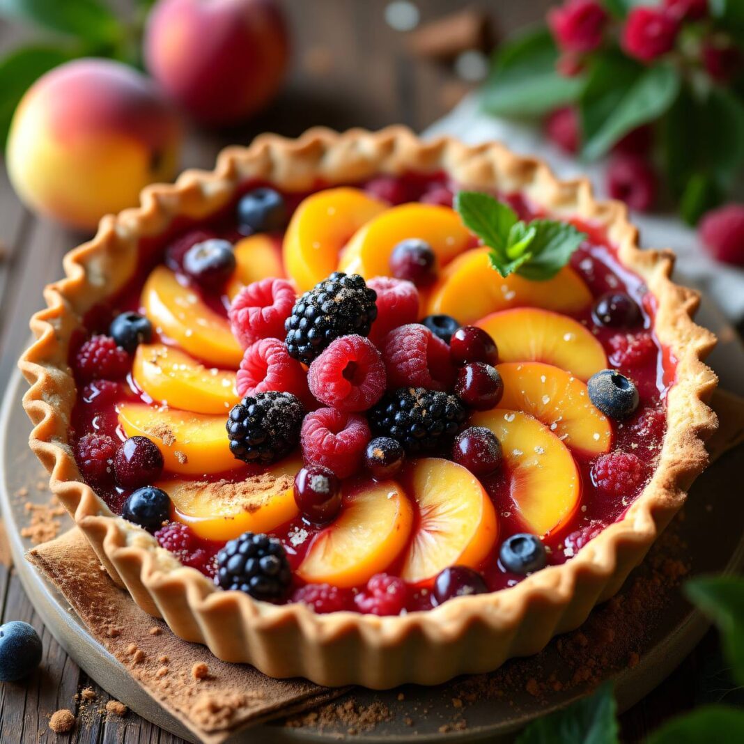 Ein köstlicher Pie mit gemischten Sommerfrüchten und Beeren, ideal für den Sommer.