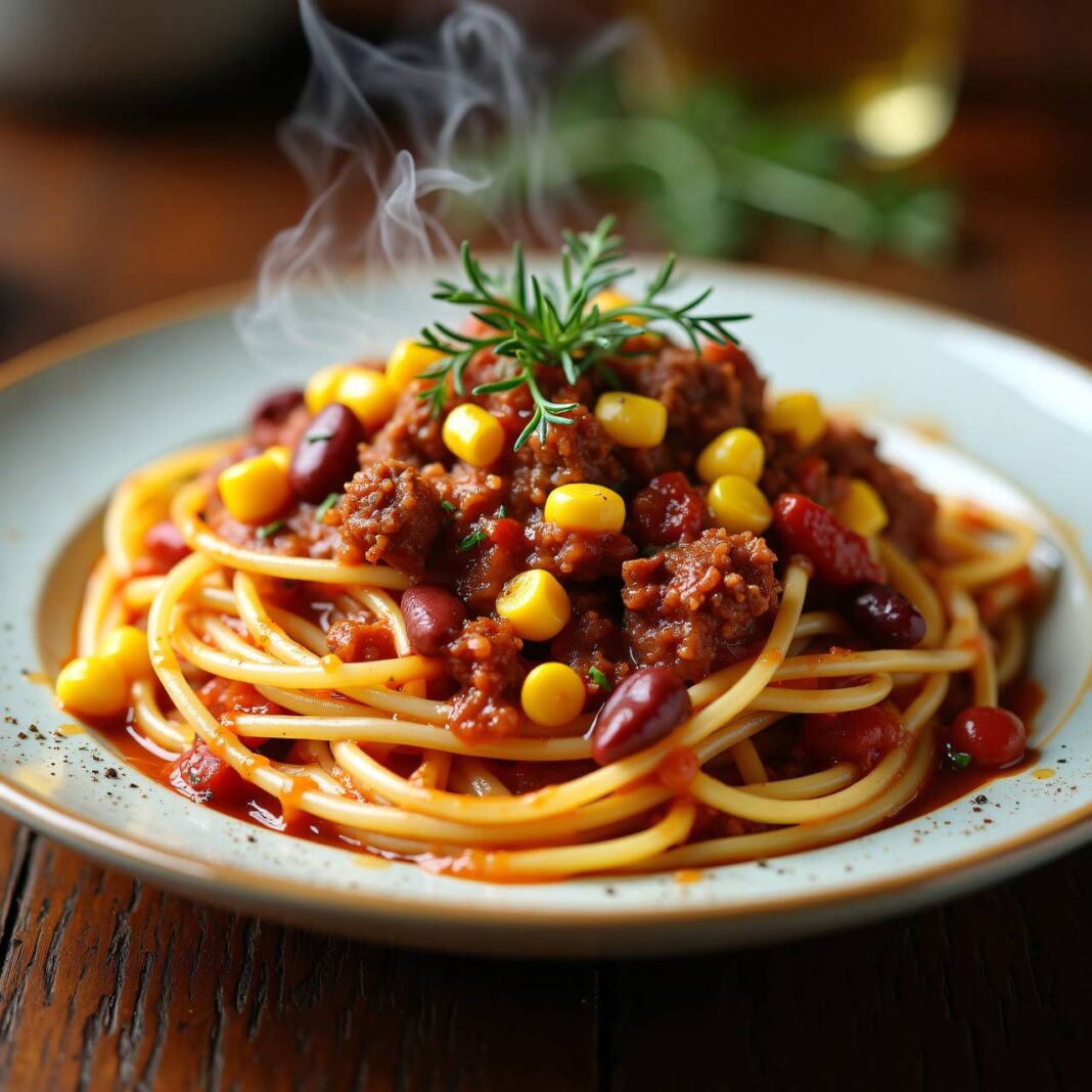 Ein köstliches Rezept für Spaghetti mit einer bunten Faschiertensauce, ideal für ein schnelles Abendessen.