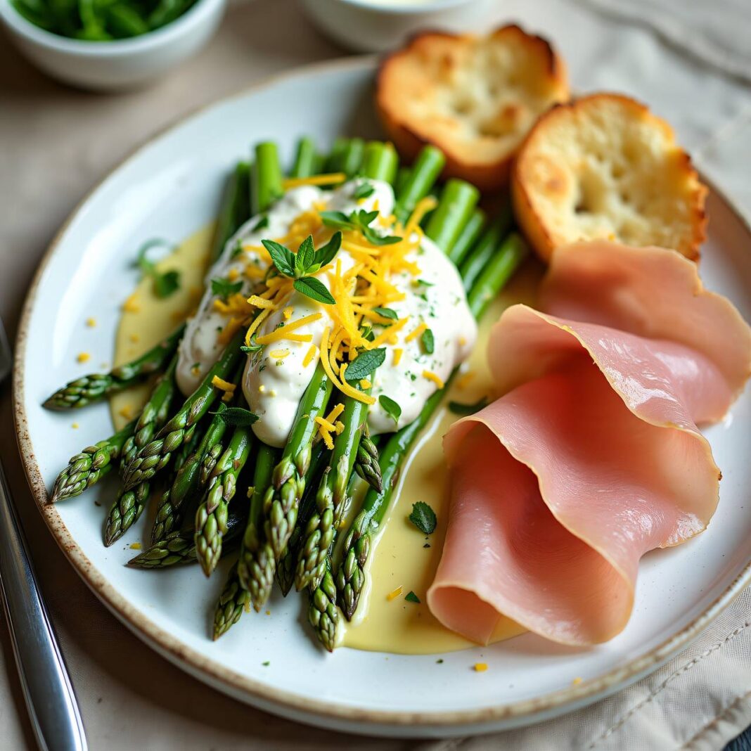 Ein köstliches Rezept für grünen Spargel mit einer feinen Zitronensauce und zartem Rohschinken.