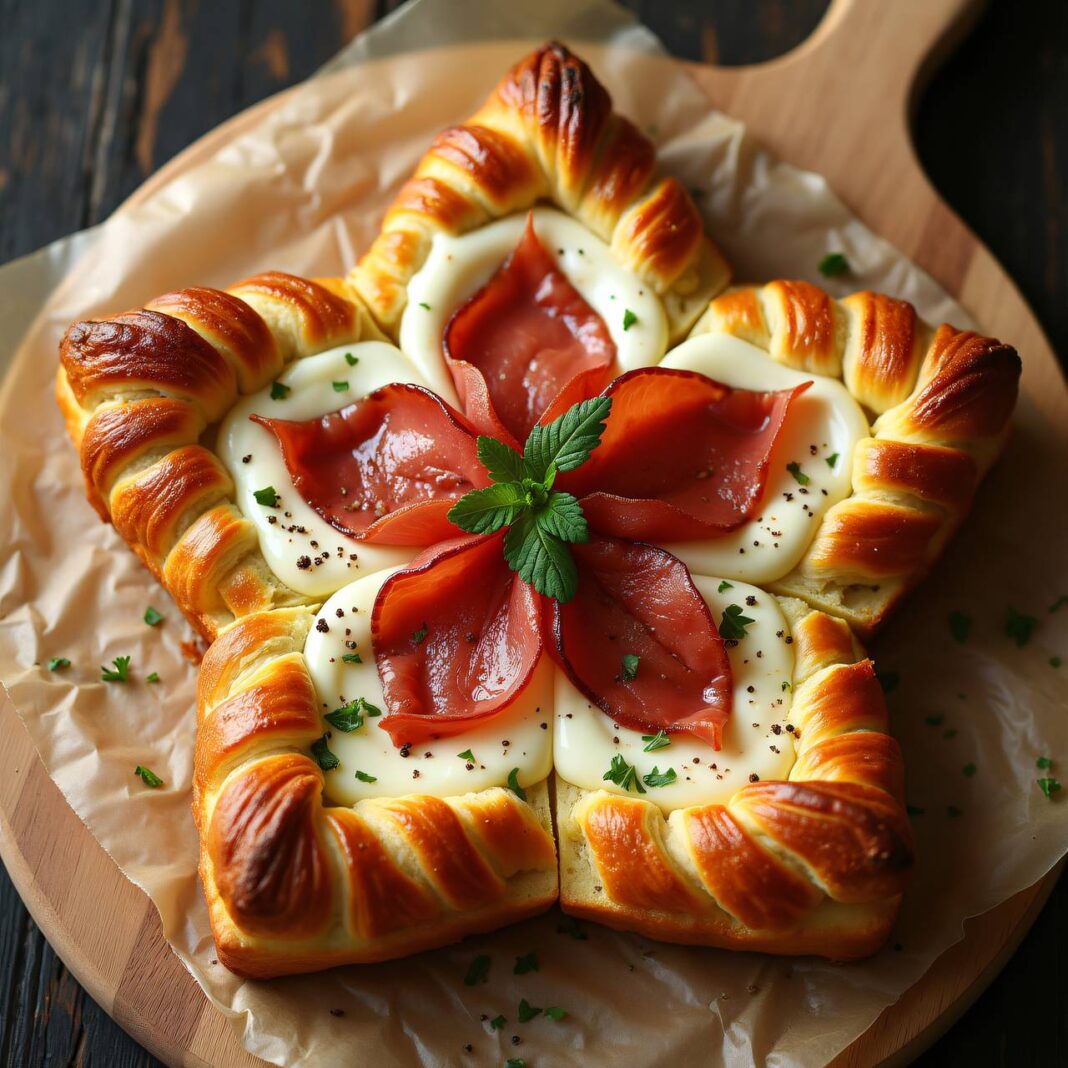Eine köstliche Sternen-Tarte mit Pizzateig, Crème fraîche und Rohschinken.