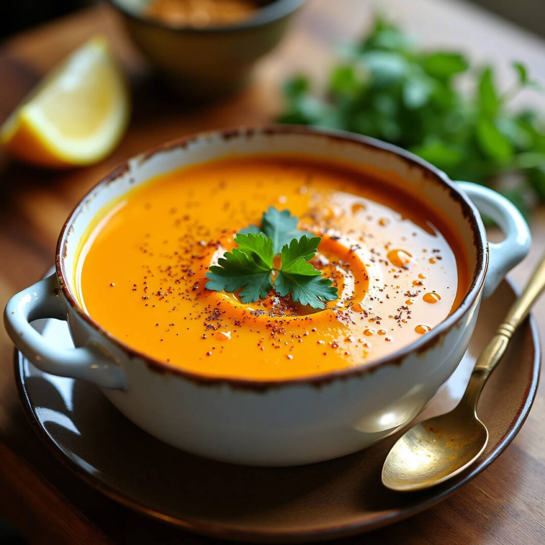 Eine cremige und würzige Süßkartoffelsuppe mit Ingwer, die perfekt für kalte Tage ist.