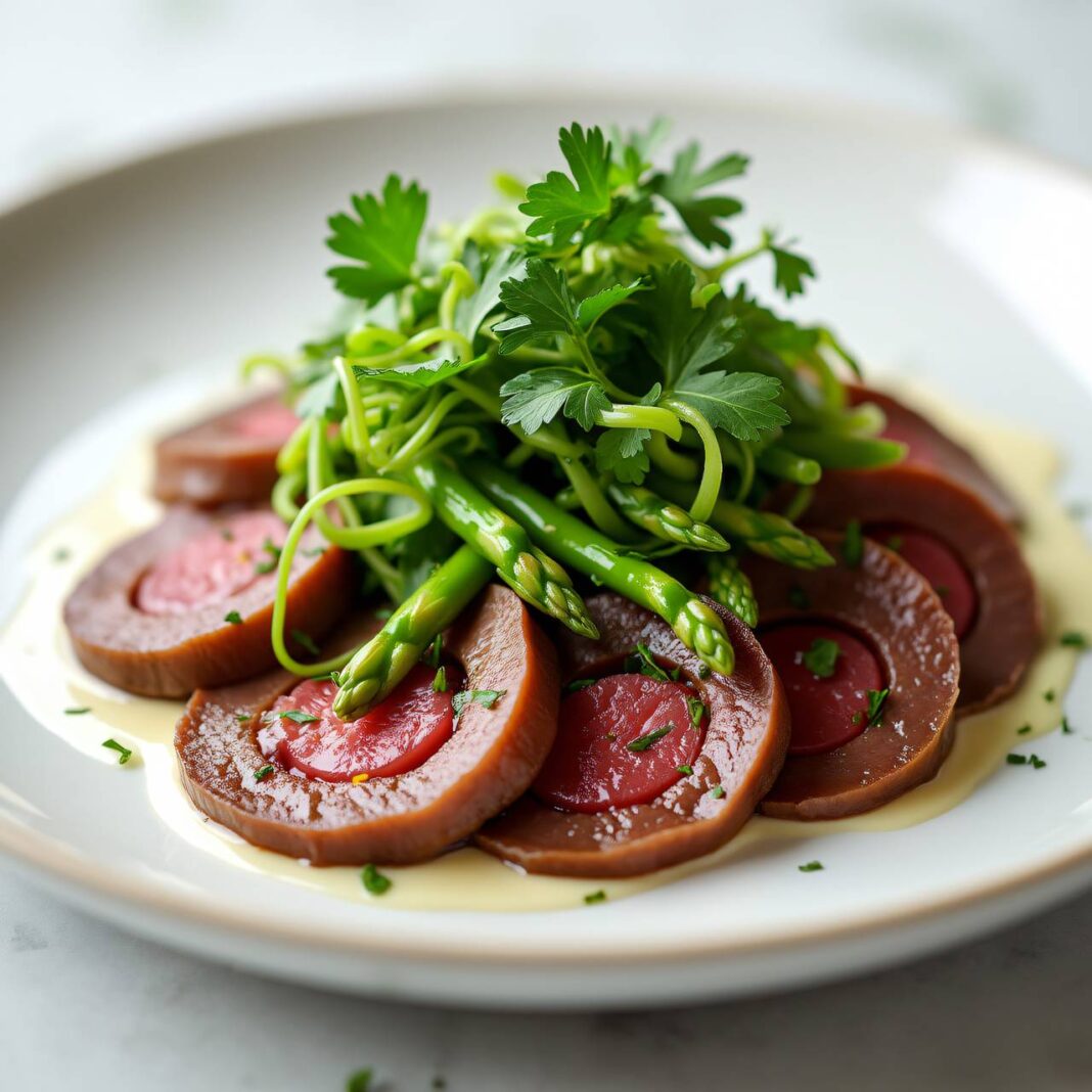 Ein köstliches Rezept für Tafelspitzröllchen, serviert mit einem frischen Spargelsalat.