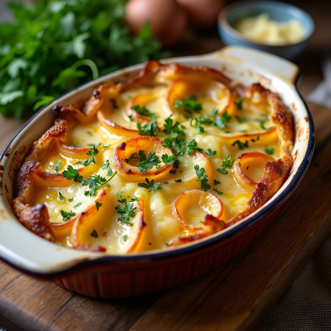 Ein klassisches französisches Gericht aus geschichteten Kartoffeln, Speck und Reblochon-Käse, perfekt für kalte Tage.
