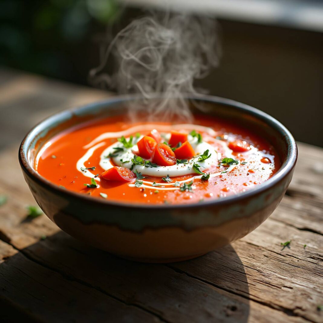 Eine köstliche und cremige Tomatencremesuppe, perfekt für kalte Tage.