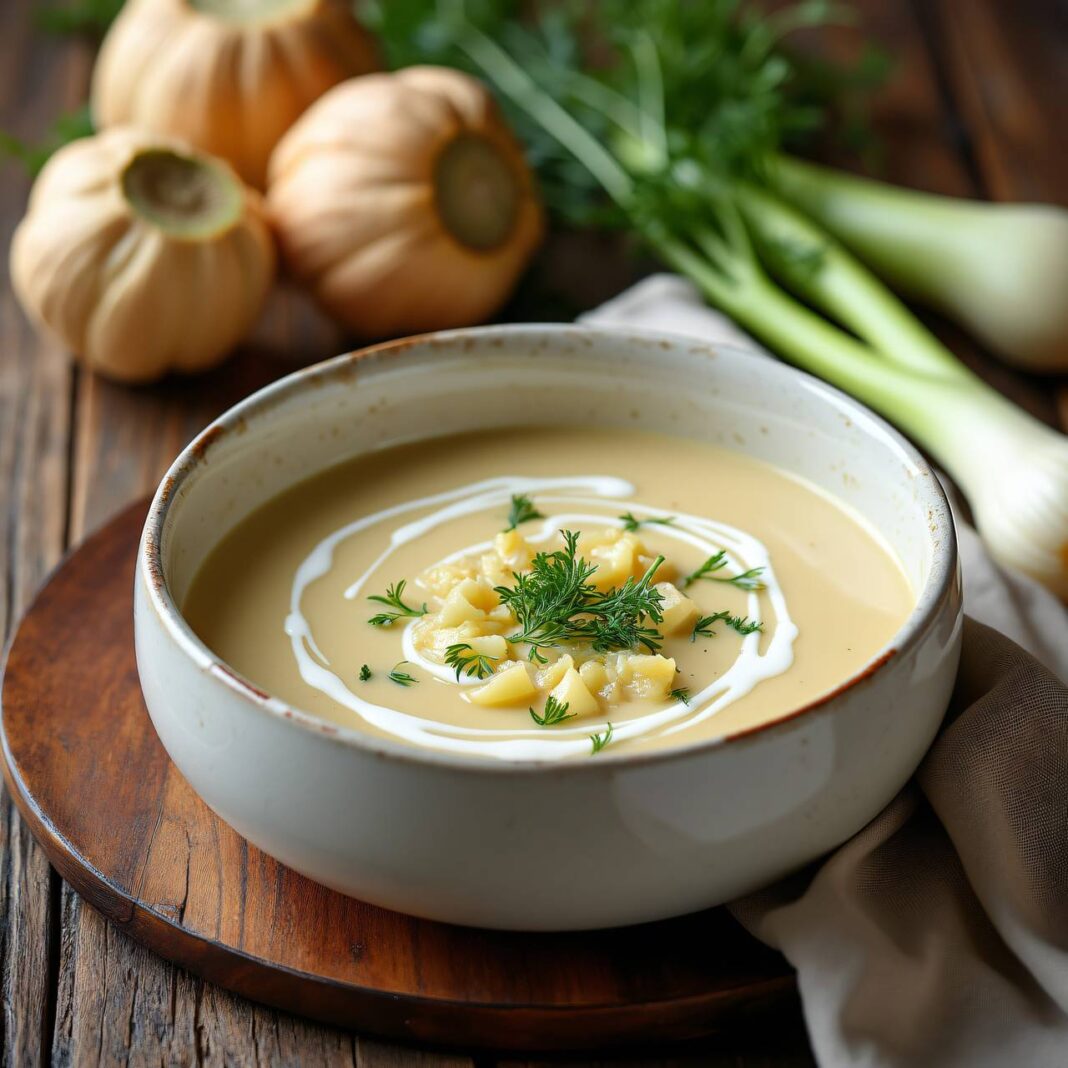 Eine köstliche und cremige Suppe aus Topinambur und Fenchel, perfekt für kalte Tage.