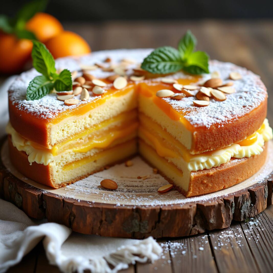 Eine köstliche Torte aus den Alpen mit einem Mürbeteigboden, einer feinen Florentiner-Masse und einer cremigen Füllung.