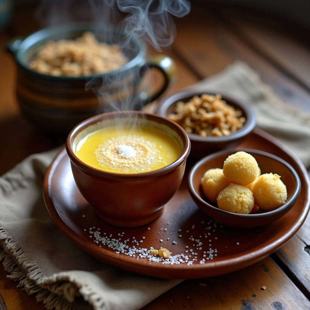 Ein traditionelles tibetisches Frühstück aus Tsampa und Buttertee, ideal für einen energiereichen Start in den Tag.