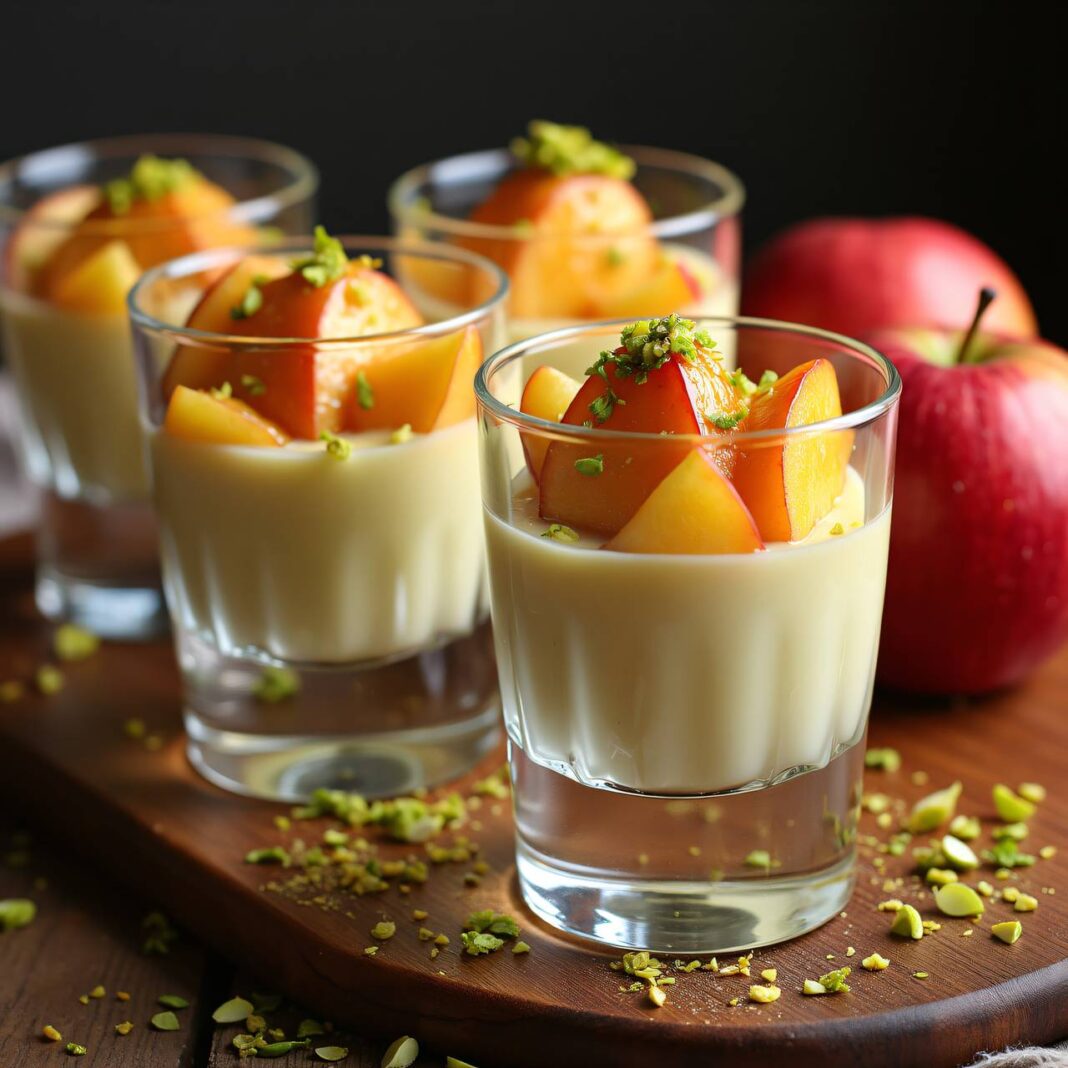Ein köstliches Dessert aus Vanille-Sabayon, serviert mit zarten Äpfeln.