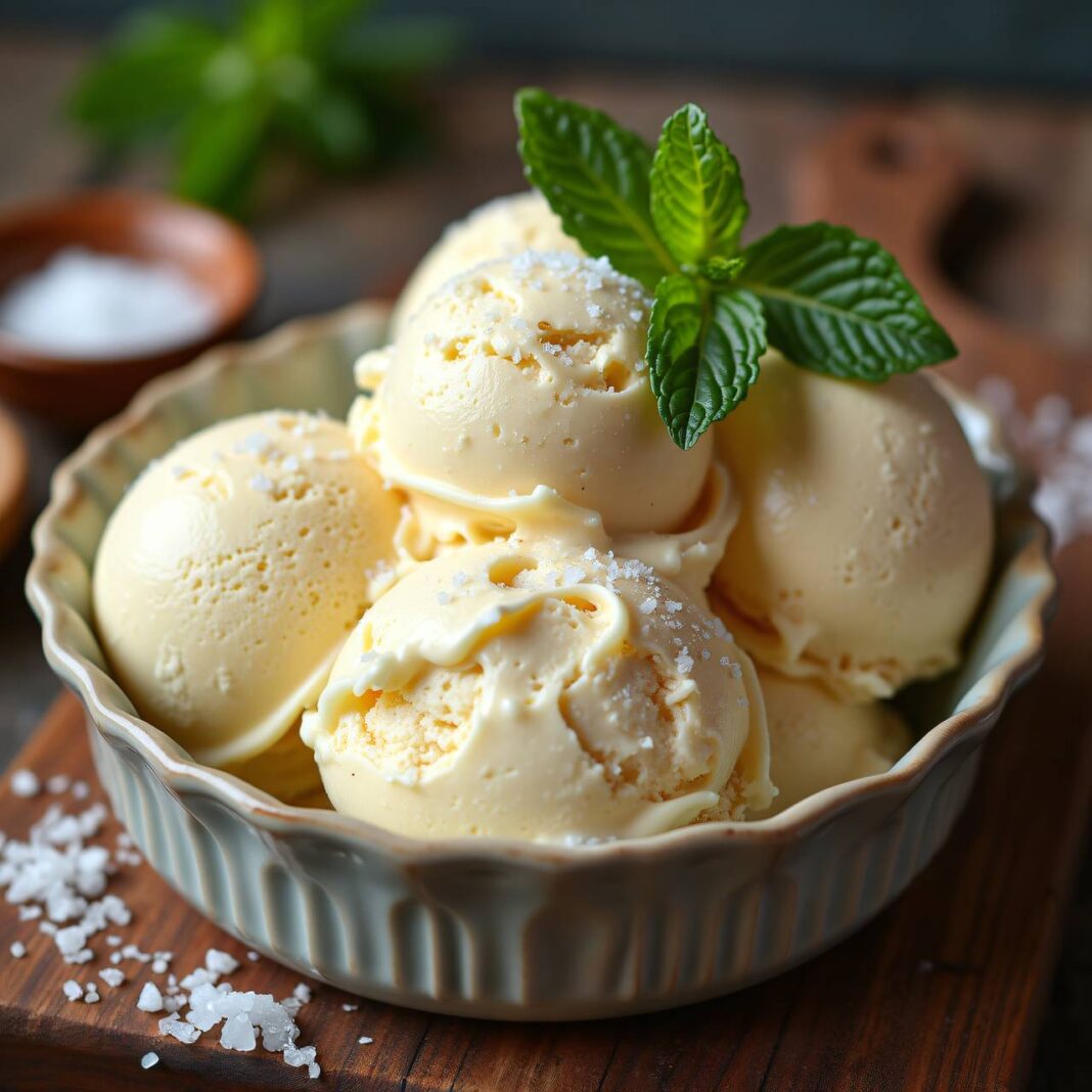 Ein cremiges Vanilleeis, das einfach zuzubereiten ist und perfekt für heiße Sommertage.