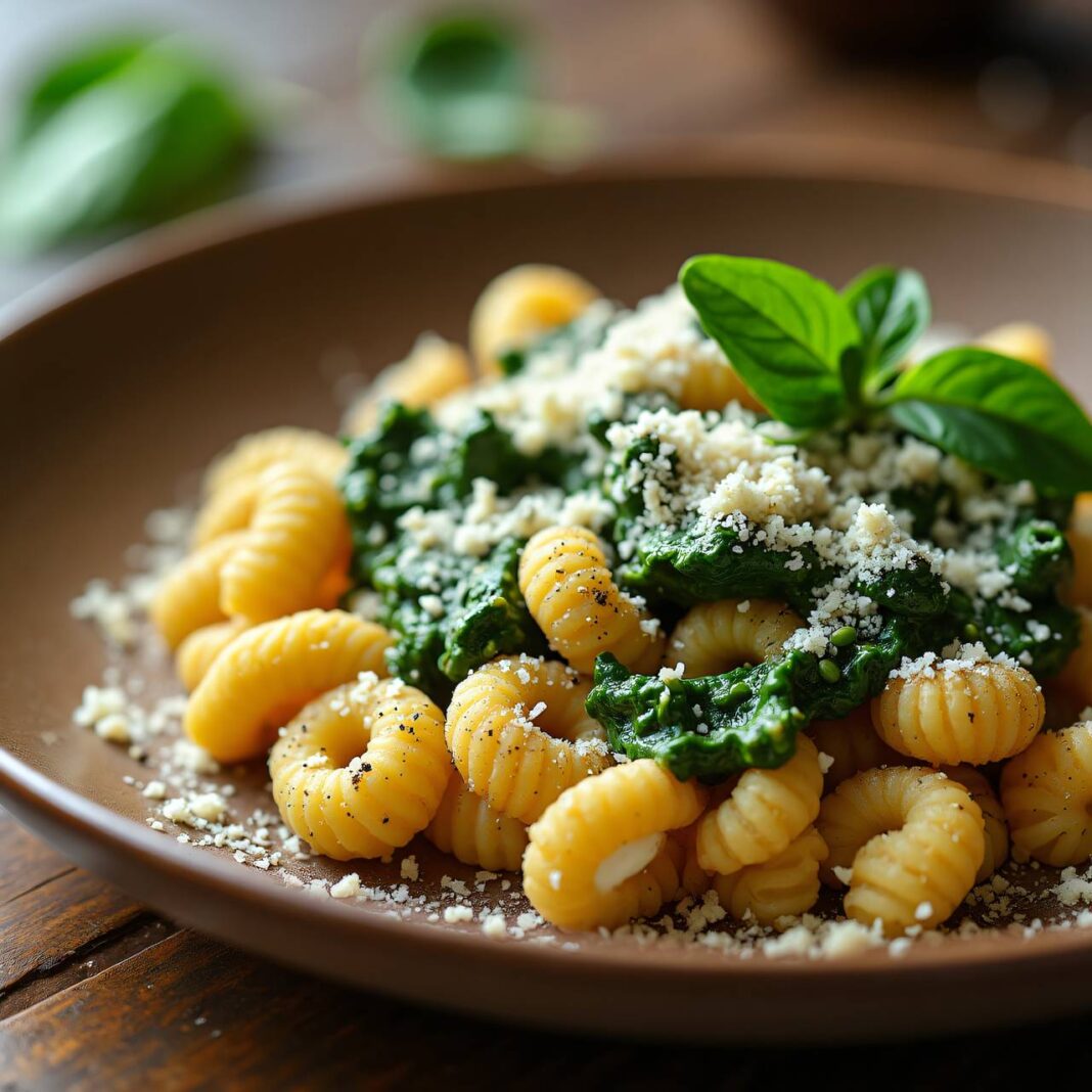 Ein köstliches Rezept für Vollkorn-Knöpfli serviert mit einer cremigen Spinat-Mascarpone-Sauce.