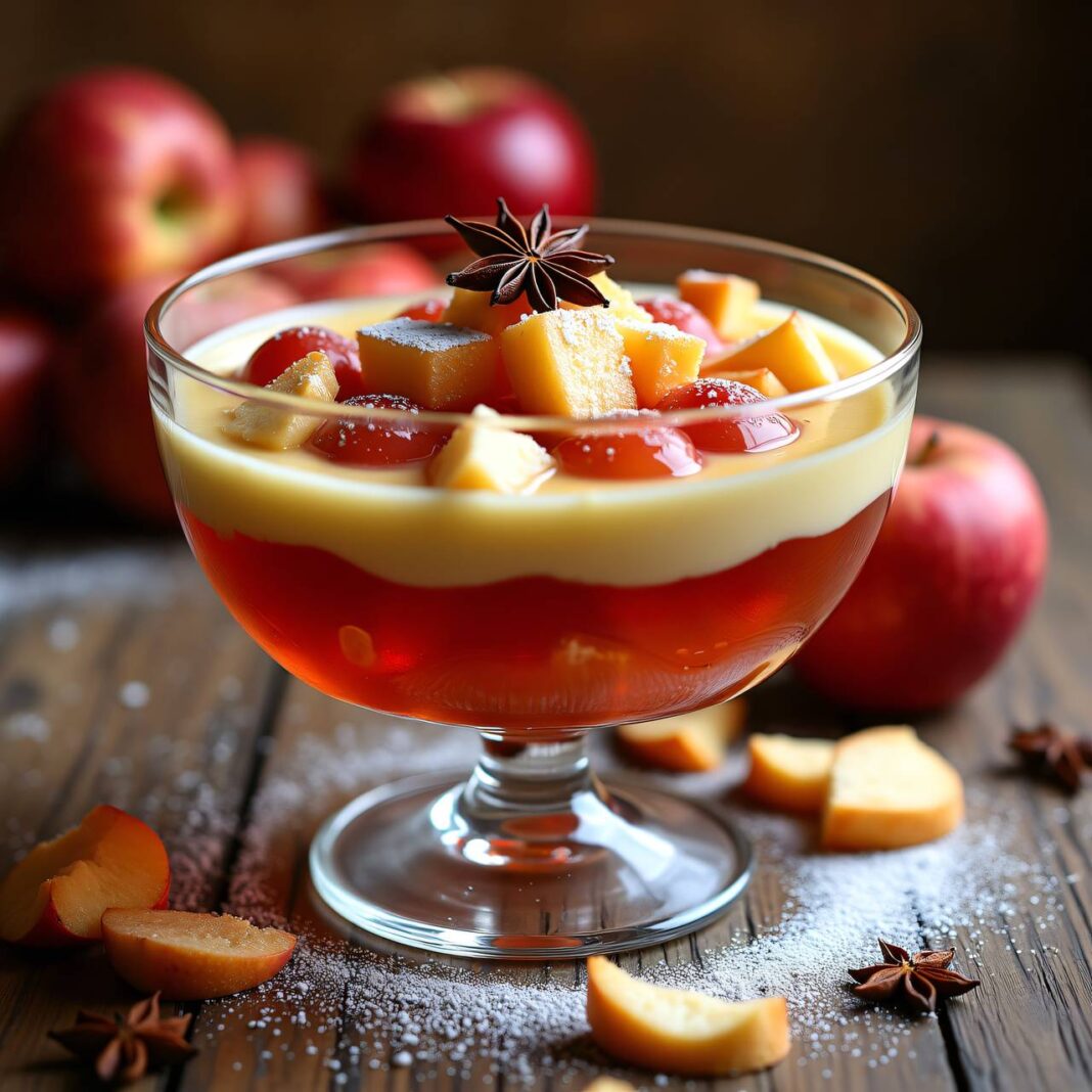 Ein köstliches Dessert aus Vanillecreme und zarten Apfelwürfeln, serviert in Schichten.