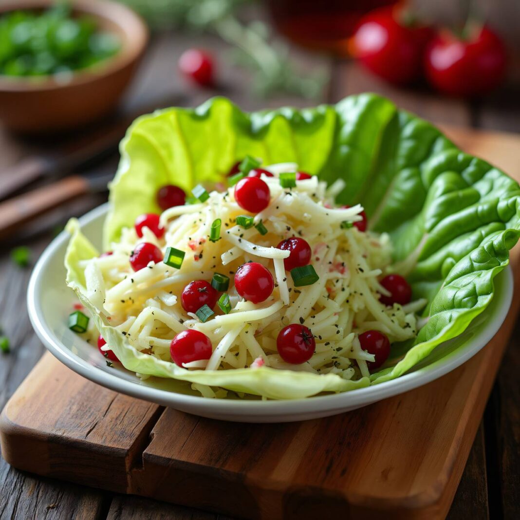 Ein erfrischender Weißkrautsalat mit einer leckeren Preiselbeer-Vinaigrette, ideal als Beilage oder leichtes Hauptgericht.