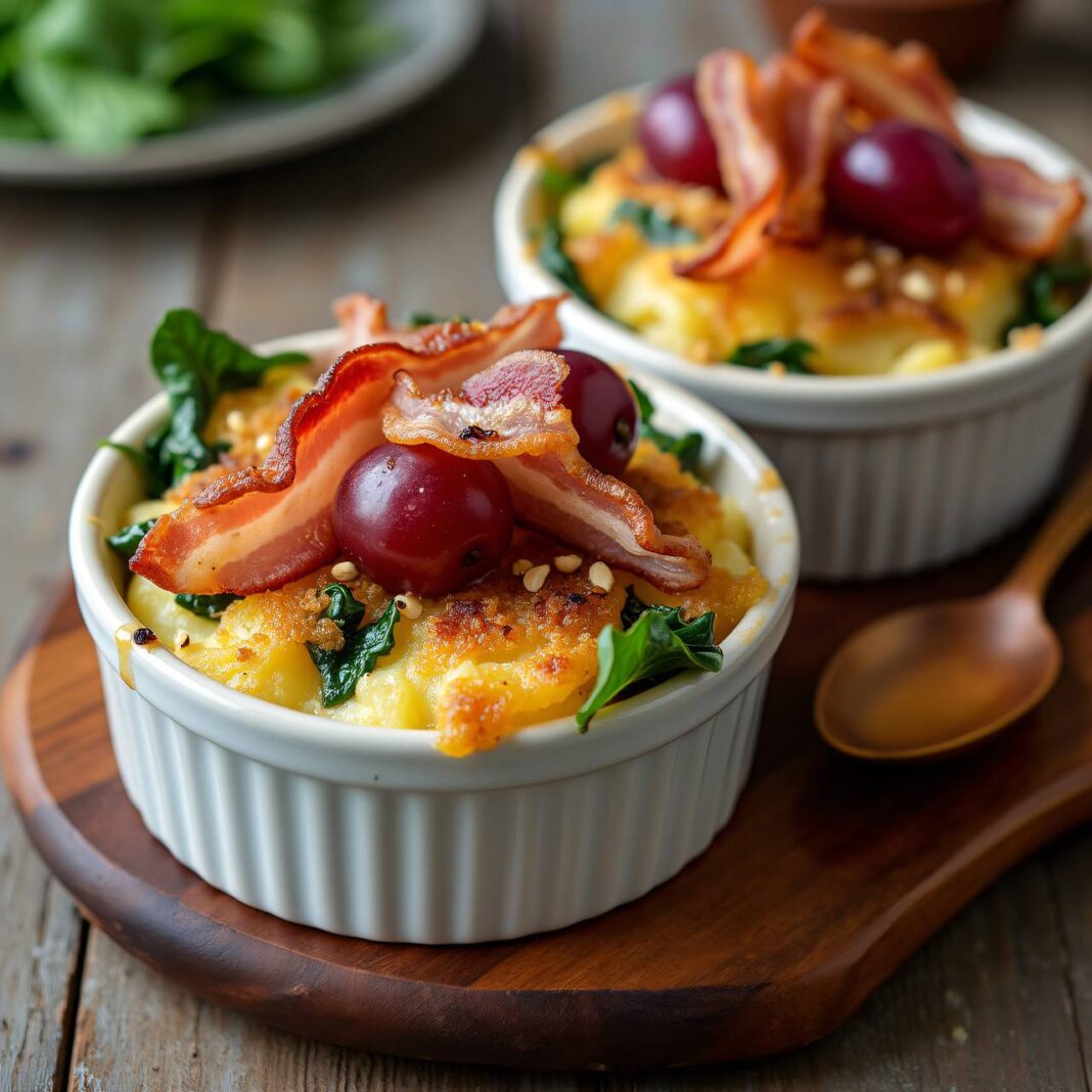 Ein köstliches Wirz-Kartoffelgratin, das mit knusprigem Speck und süßen Trauben verfeinert wird. Ideal für ein herzhaftes Abendessen.
