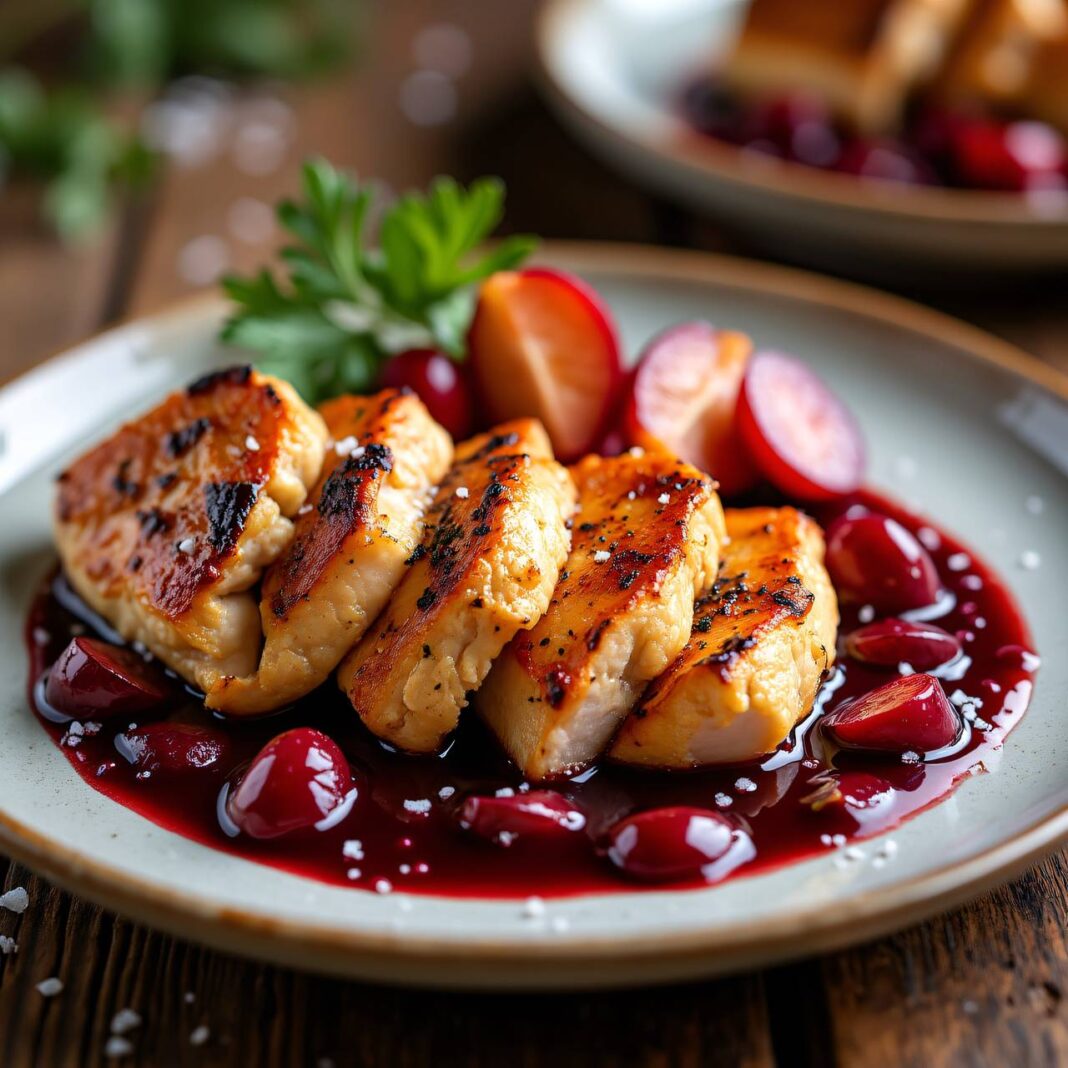 Ein schmackhaftes Rezept für würzige Hühnerbrustfilets, serviert mit einer köstlichen Zwetschgensauce.