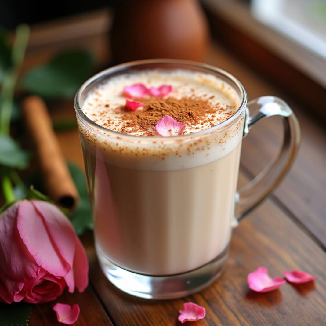 Ein cremiger und aromatischer Shake mit Zimt und Rosenwasser, perfekt für einen erfrischenden Genuss.