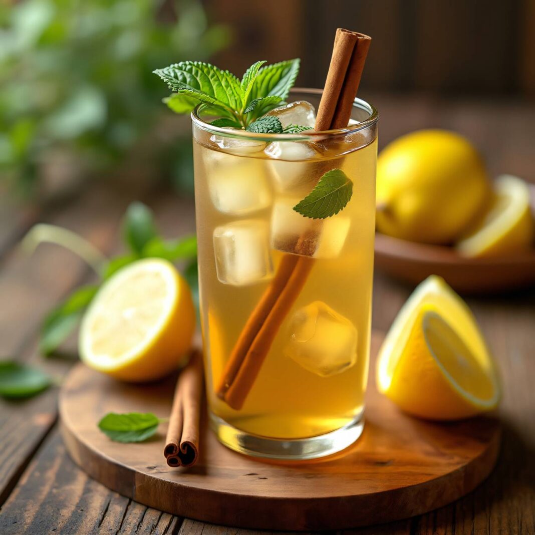 Erfrischender Zitronenmelisse-Eistee, ideal für heiße Sommertage.