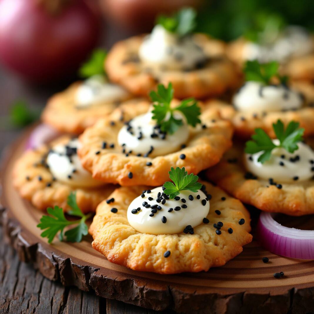 Leckere Zwiebel-Cookies mit Mascarpone und schwarzem Sesam.