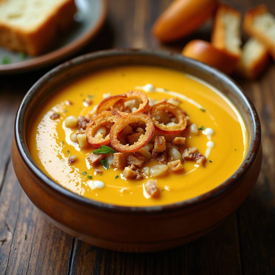 Eine köstliche und cremige Zwiebel-Crèmesuppe, ideal für kalte Tage.