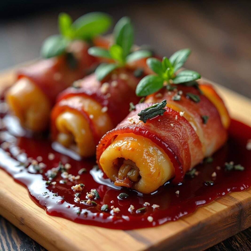 Ein herzhaftes Rezept für Zwiebel-Salbei-Fleischvögel, gefüllt mit einer köstlichen Zwiebel-Salbei-Mischung und umwickelt mit Speck.